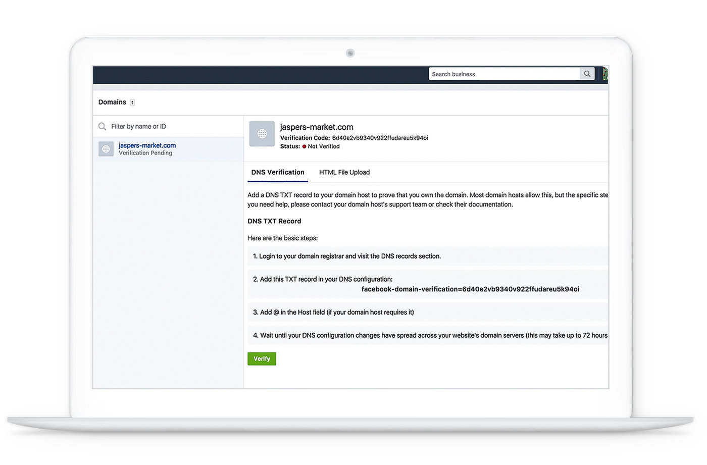 • Verify your domain if you have multiple pixels that belong to multiple businesses or personal ad accounts.